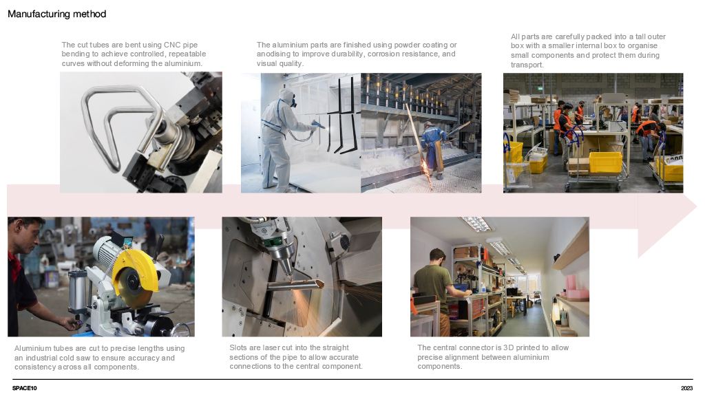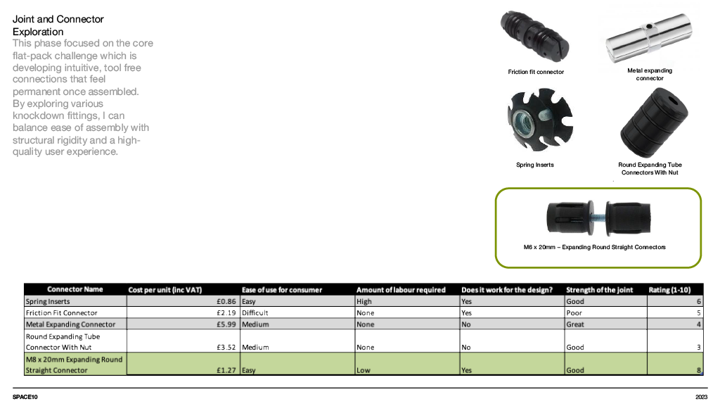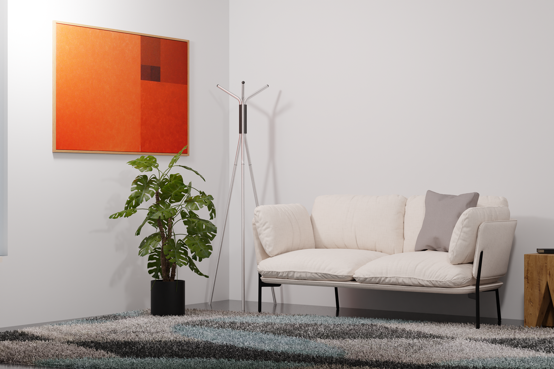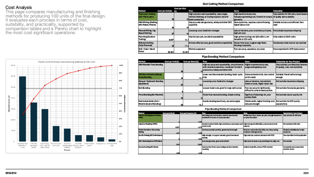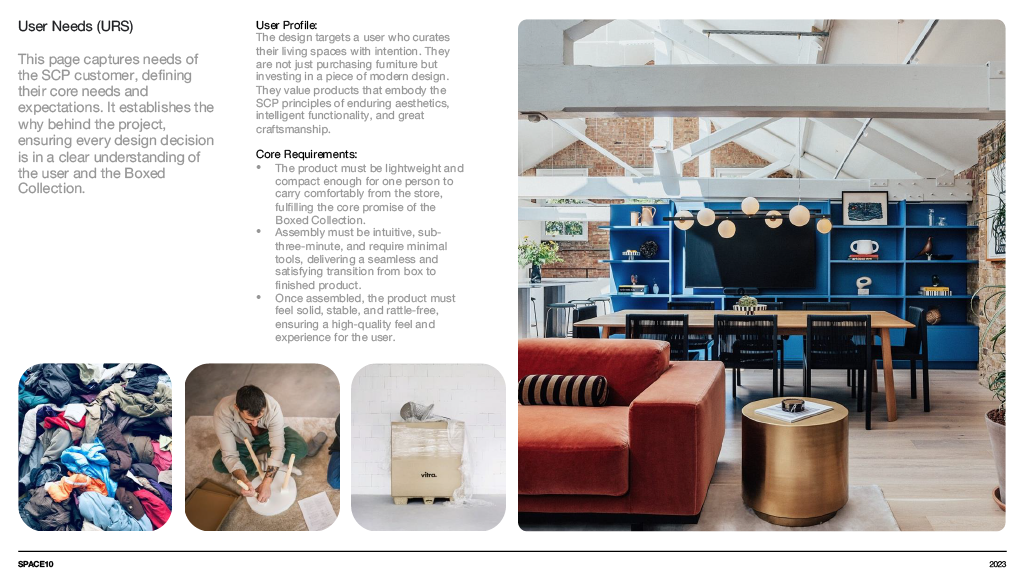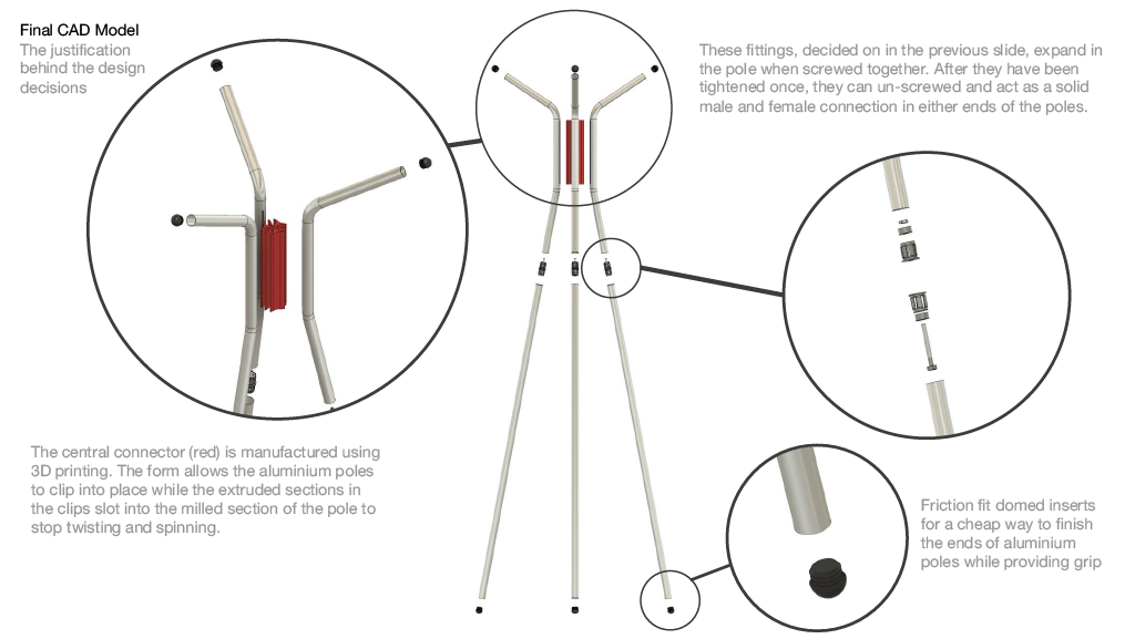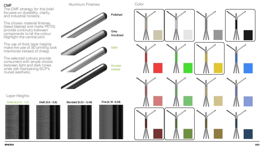 A concept furniture piece exploring flat pack efficiency through refined, bent aluminium construction. The design focuses on a lightweight coat stand that assembles into a stable tripod structure while packing neatly into SCP’s Boxed Collection format. Iterative sketching, modelling and material testing shaped a form that balances clarity, craftsmanship and modern simplicity, resulting in a sculptural object that is both compact in transit and elegant in use.
