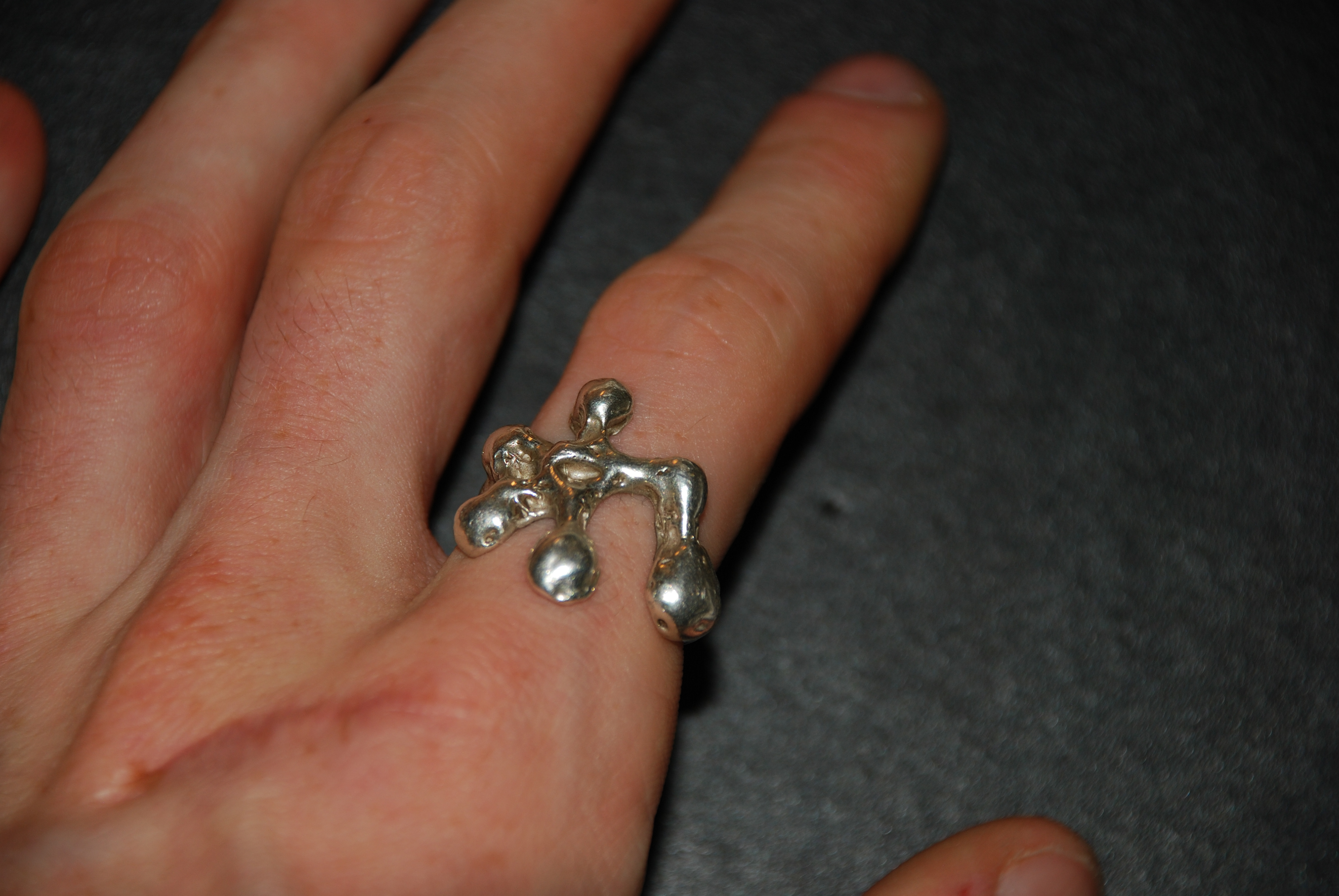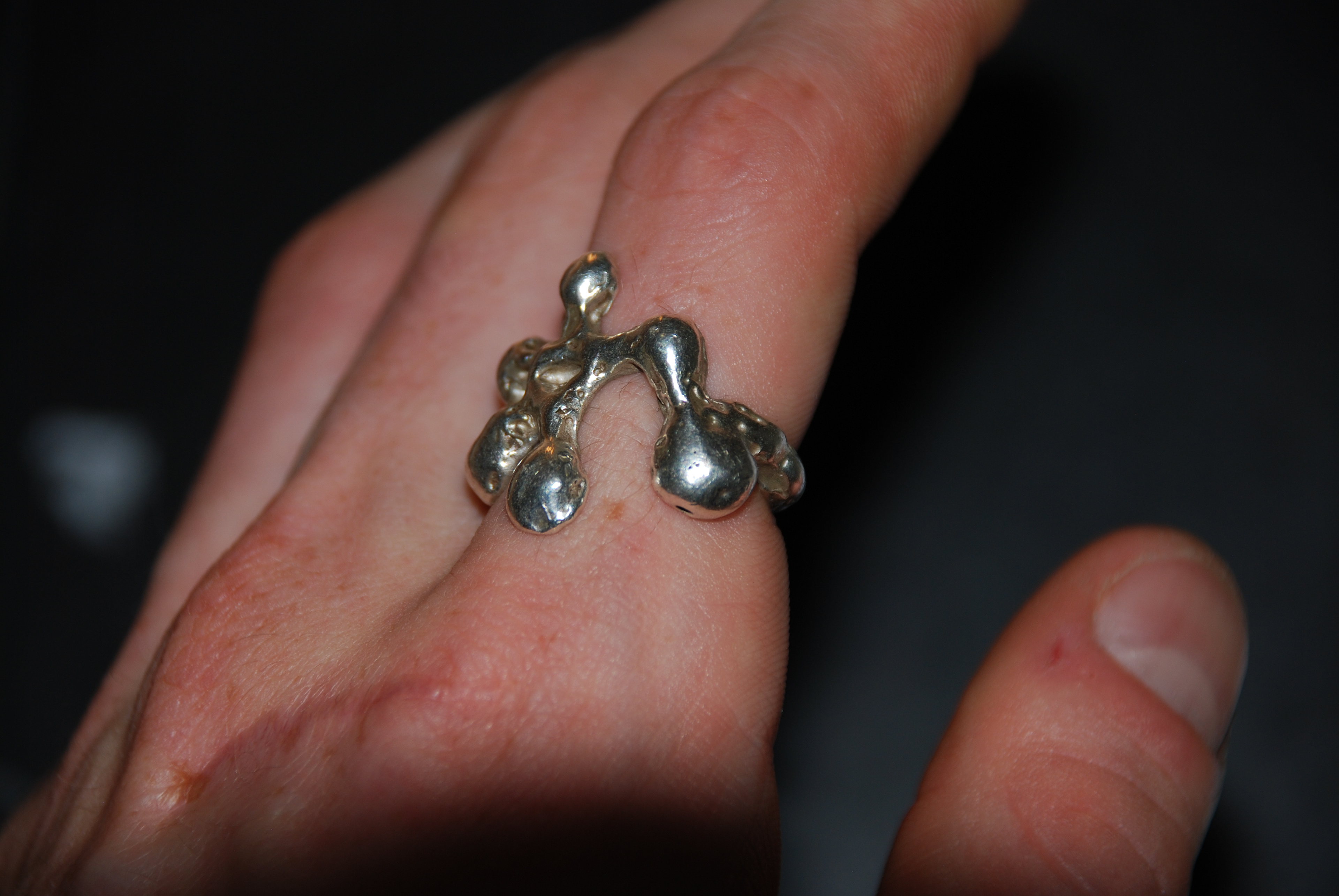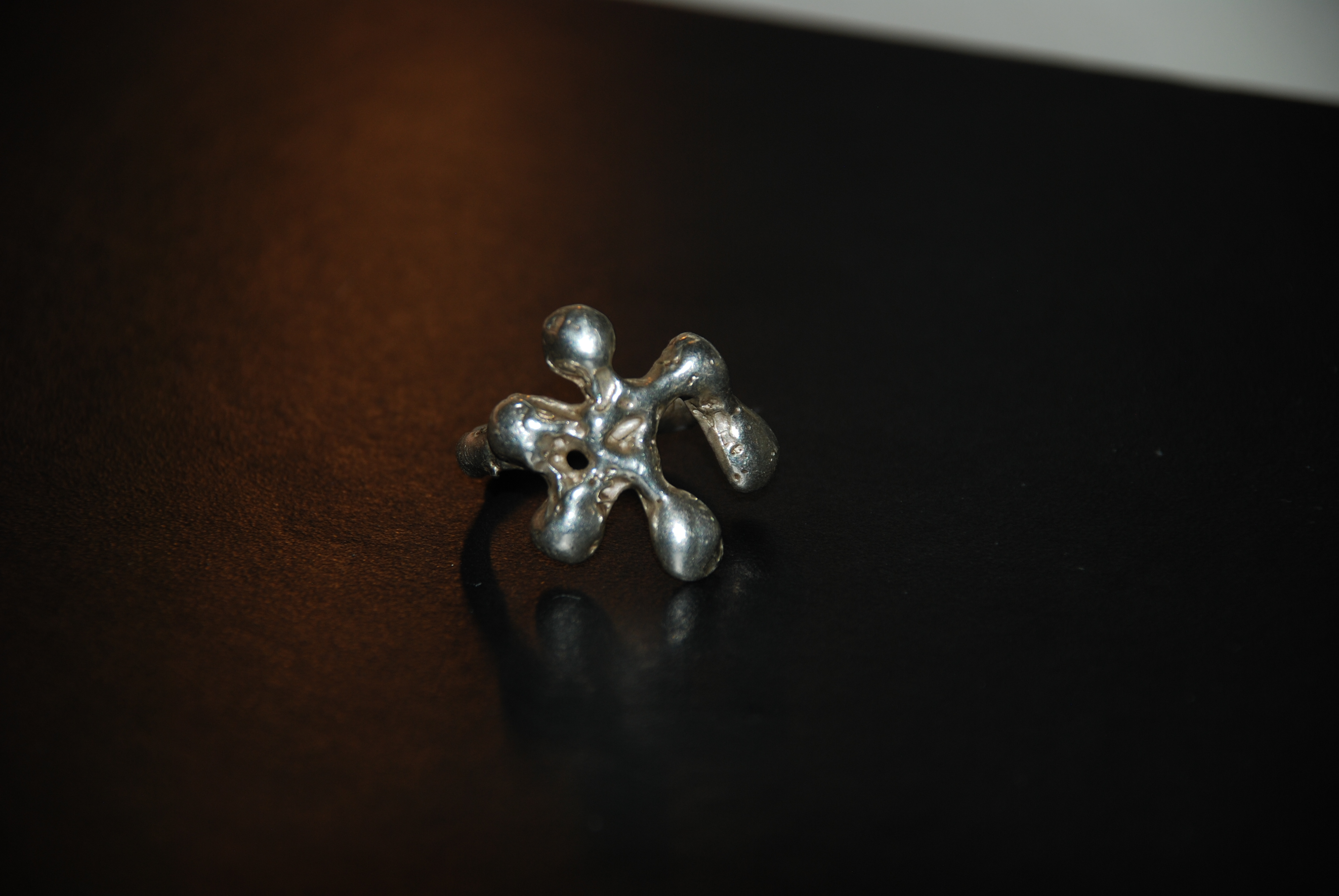 The Splat Ring was created through the lost wax casting process from a hand-carved wax original. Its fluid, organic form captures the spontaneity of handcraft, making the ring a one of a kind statement piece.