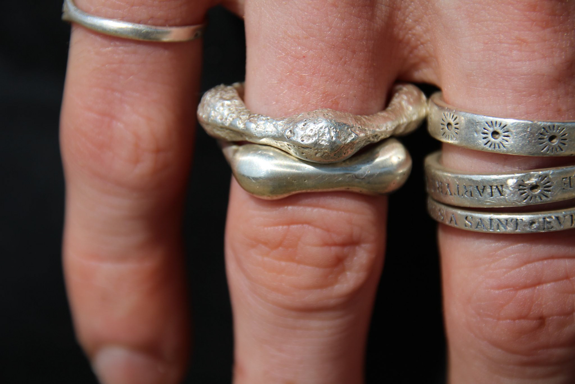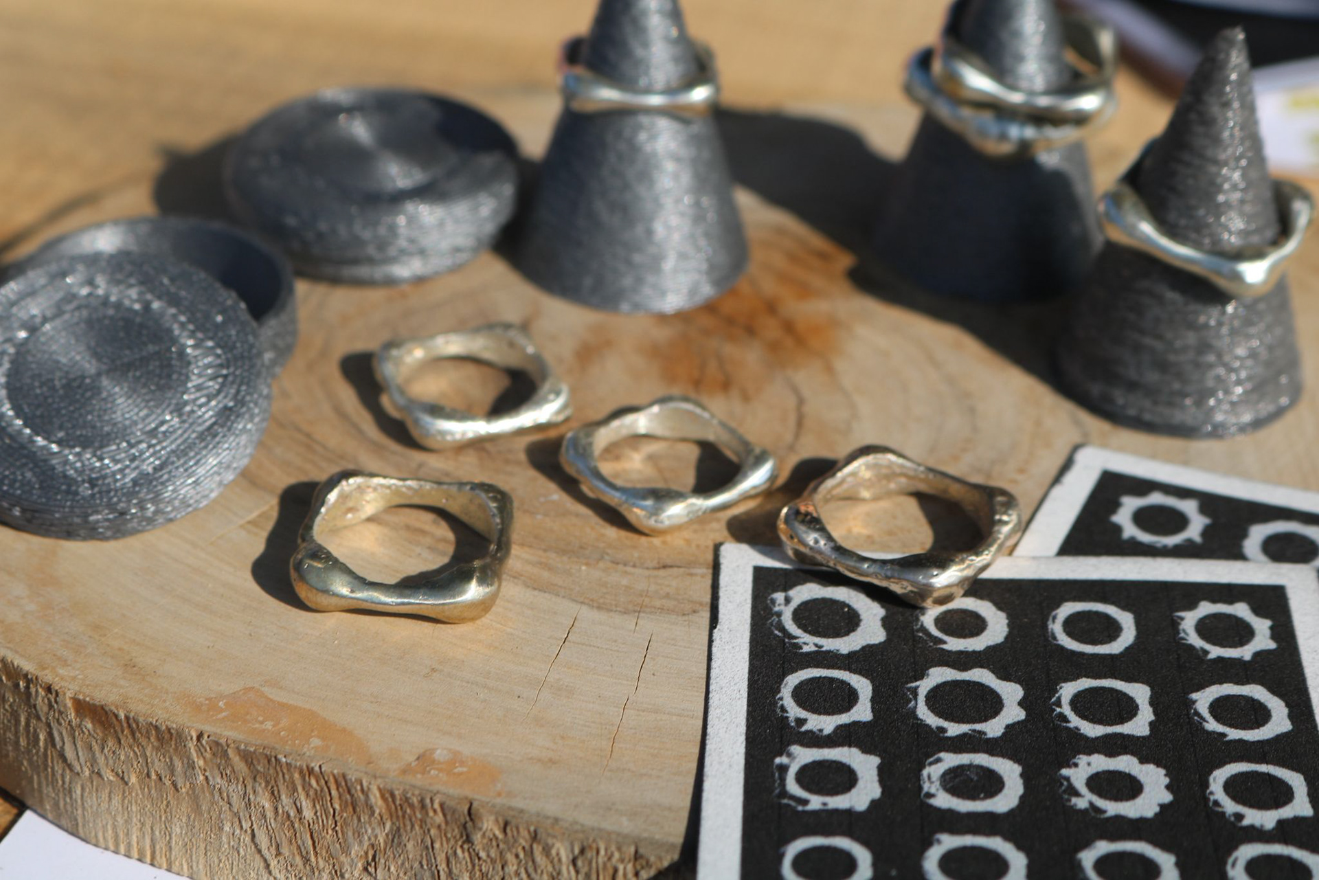 A series of handmade sterling silver rings with fluid, organic forms designed for stacking. Each piece begins as a 3D-printed positive, which is then sand cast and finished by hand, giving every ring a unique character. Blending digital design with traditional craft, the collection highlights the tactile qualities of silver while remaining versatile as everyday jewelry. To date, over 20 rings have been sold, each individually crafted with care.